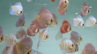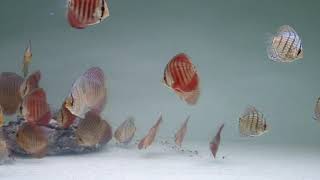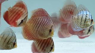 Son discos con un color azul casi sólido. Normalmente presentan barras de estrés encima de los ojos y en el principio de la aleta caudal, las demás rayas aunque las tienen, no suelen ser visibles. Históricamente es una de las primeras variedades en aparecer a partir de criar los discos salvajes en cautividad.