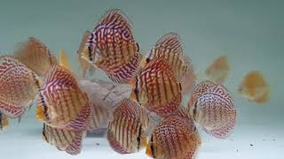Fondo azul con manchas irregulares rojas, muchas de ellas en forma de anillo, para adornar una de las variedades de disco mas bonitas actualmente. Los discos Ring Leopard de Tony Tan en estos últimos años son de los mas cotizados a nivel mundial y han ganado innumerables premios en concursos a lo largo de todo el mundo.
